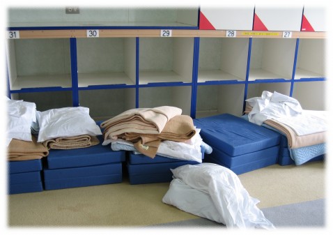 (こんな感じのマットレスにシーツを引いて寝る。ちゃんと番号が指定されてる)