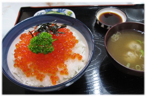 宗谷岬に到着。記念撮影して飯を食う。前着た時と同じ店に入り、味噌ラーメンとイクラ丼を食べる。