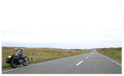 電柱もないただひたすら真っ直ぐな道を左手に日本海、右手にサロベツの自然を見ながら