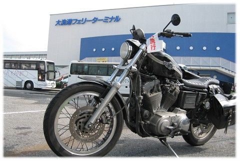 大洗フェリーターミナル到着。乗船手続きを済ませ、バイクで搭乗。少し遅くなったので周りにバイクいない。