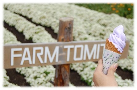 天気も良くて花もきれいで「ラベンダーソフトクリーム」と「メロンソフトクリーム」なんて食べたりして