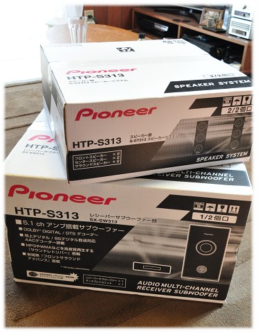 そこで、とりあえず手軽にサラウンド感を楽しもうと、パイオニアのウーファーアンプ一体型で、小さいスピーカーが6個もついてきて価格も手ごろ、そして評判もそこそこよい「HTP-S313」を購入したわけです。